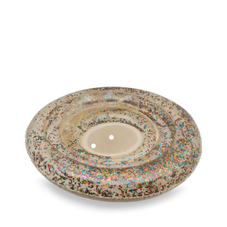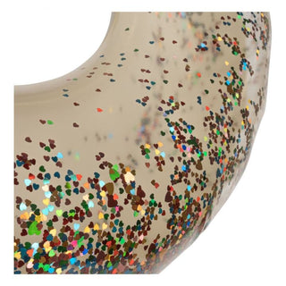 The swim ring is transparent with glitter and confetti in all colours.