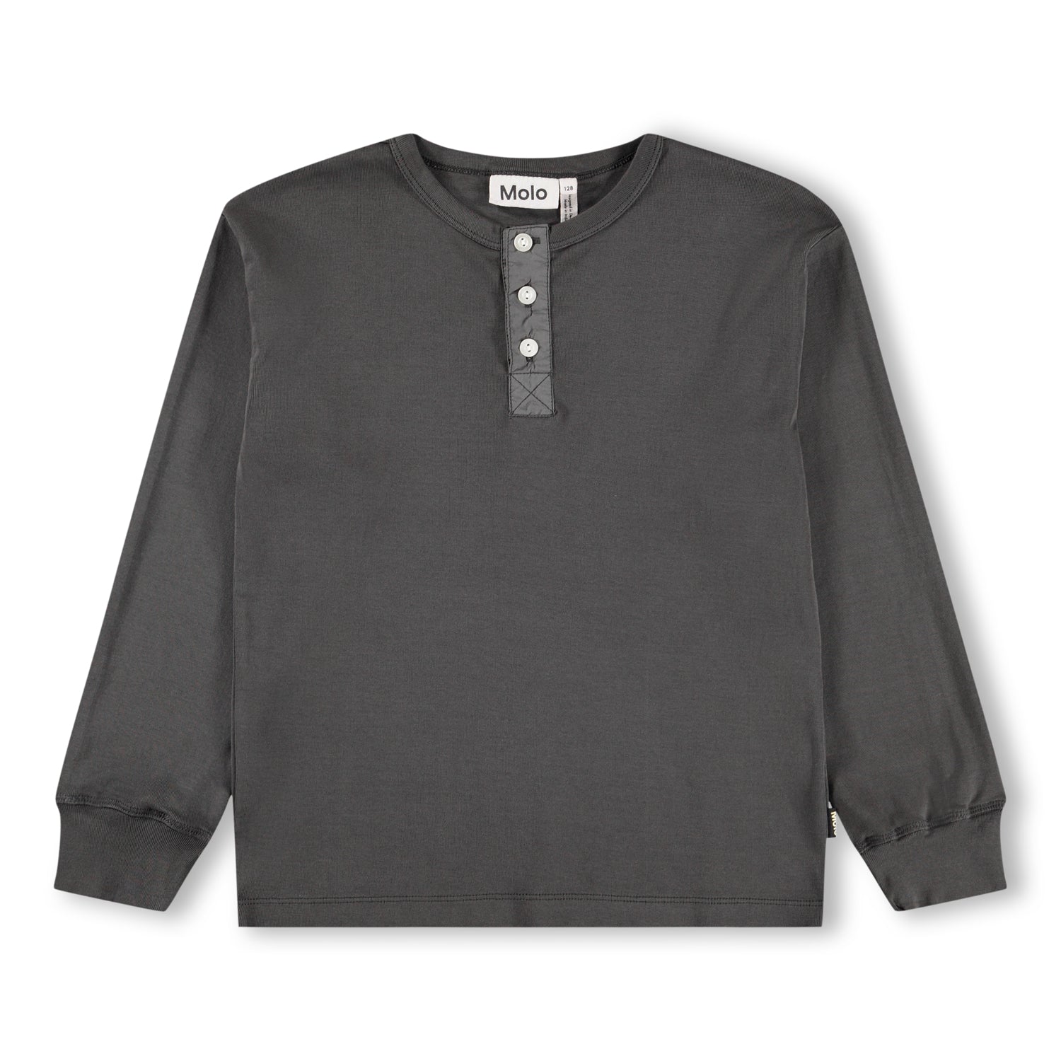 Timeless long-sleeve blouse from Molo in sophisticated charcoal grey (Raven). The clean, minimalist design transitions effortlessly across seasons and pairs seamlessly with everyday essentials. Built for durability and lasting style.